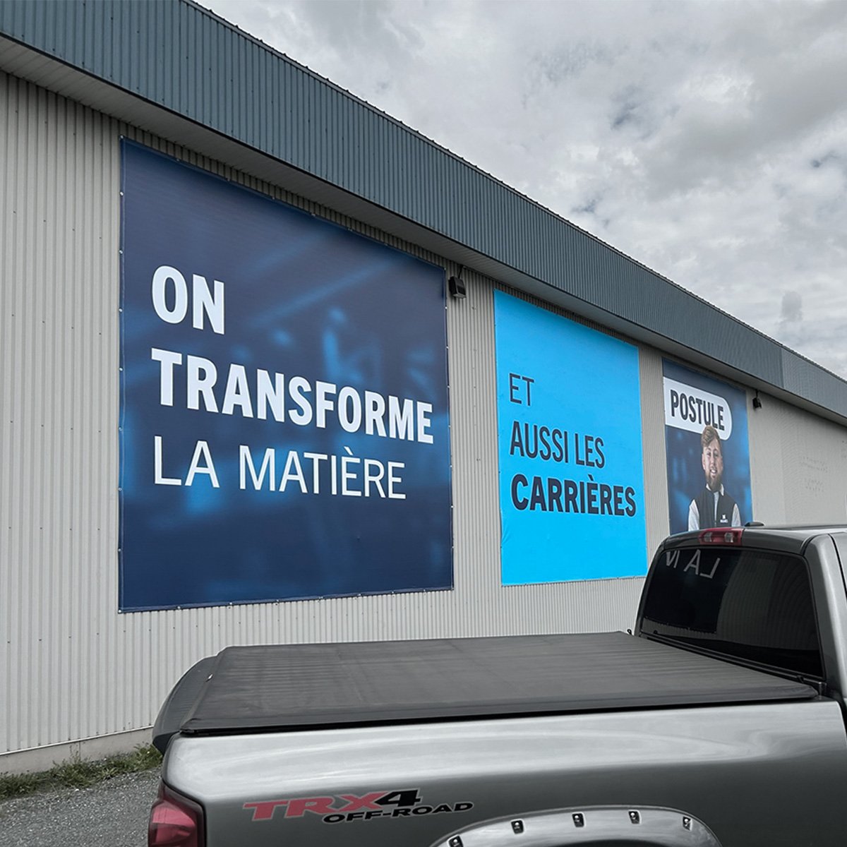 Caractéristiques: - Bannières 13 ou 18 oz - Option avec coutures ou soudures thermiques - Option avec sangles de renforts aux extrémitées - Option de pose d'oeillets aux 2 pieds - Trous d'aérations si nécessaire