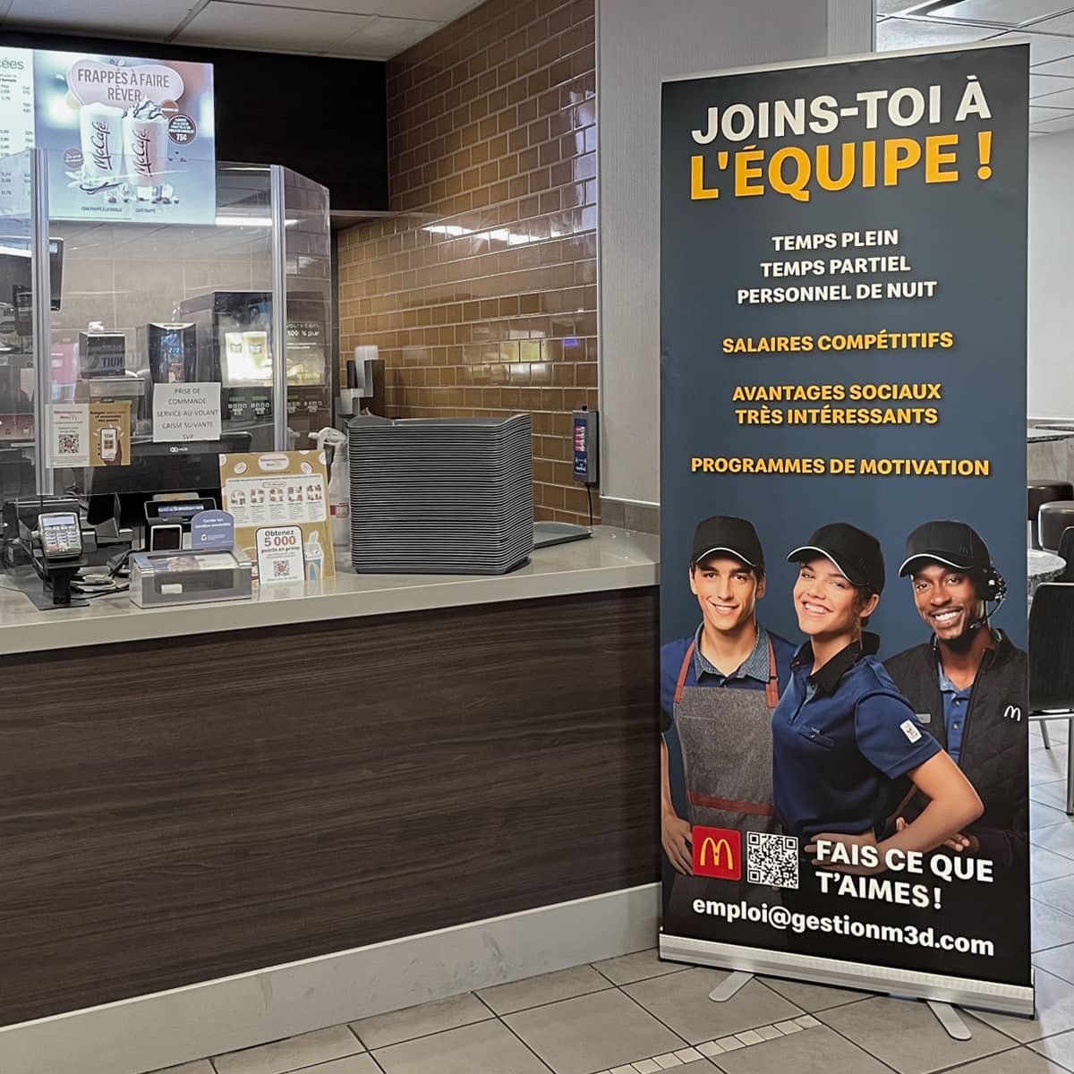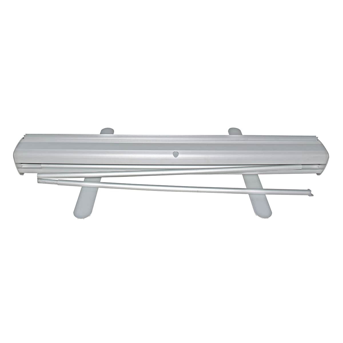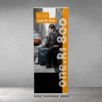 Tout-en-un, one comprend un carter compact et léger en aluminium, deux pieds stabilisateurs escamotables, un visuel imprimé sur notre matériel anti-curl. Un enrouleur qui passera à travers le temps dans sa housse de transport.