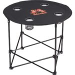 Célébrez votre prochain party d’avant-match ou pique-nique avec cette table ronde pliante ! Vous pouvez aussi afficher votre logo en évidence lors d’un salon ou d’un événement d’entreprise tout en divertissant vos invités. Légère, elle est facile à transporter et à monter/démonter. Elle est dotée d’une structure en acier robuste, d’un plateau en 600D de 72,6 cm de diamètre et de quatre (4) porte-gobelets en filet intégrés. Le plateau est à 59,7 cm du sol. Assemblage requis. Disponible en livraison express avec Sureship.