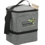 La glacière Tundra recyclée offre un grand espace de rangement pour toutes vos gourmandises du midi. Elle est dotée d’un compartiment supérieur zippé isotherme et d’un compartiment inférieur zippé isotherme. Le compartiment inférieur est idéal pour votre boîte à bento. La poche avant est idéale pour ranger votre masque. La doublure et l’extérieur de cette glacière en PEVA sont en RPET. Grâce à un partenariat avec 1% For The Planet, 1 % des ventes de ce produit et de tous les produits EcoSmart seront reversés à des associations œuvrant pour la protection de l’environnement.