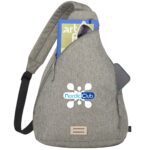 The Goods Recycled Sling is made from 600D RPET. This sling features a front zippered pocket and a zippered main compartment. The padded, adjustable shoulder strap and RPET lash tab upgrade this sling. Through a partnership with 1% For The Planet, one percent of sales of all EcoSmart® products are donated to environmental nonprofits.