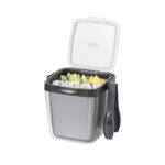 Gardez vos glaçons et vos garnitures à portée de main, pour vos fêtes en intérieur comme pour vos pique-niques en plein air. Préparez-vous pour toutes vos fêtes, à l’intérieur comme à l’extérieur, avec ce seau à glace isotherme. Il est livré avec une pince en nylon qui se suspend facilement de chaque côté et un plateau amovible pour ranger les garnitures. La poignée de transport reste accessible et le réservoir d’eau de fonte empêche l’eau de fondre sur les glaçons. Sans BPA. Lavage à la main.